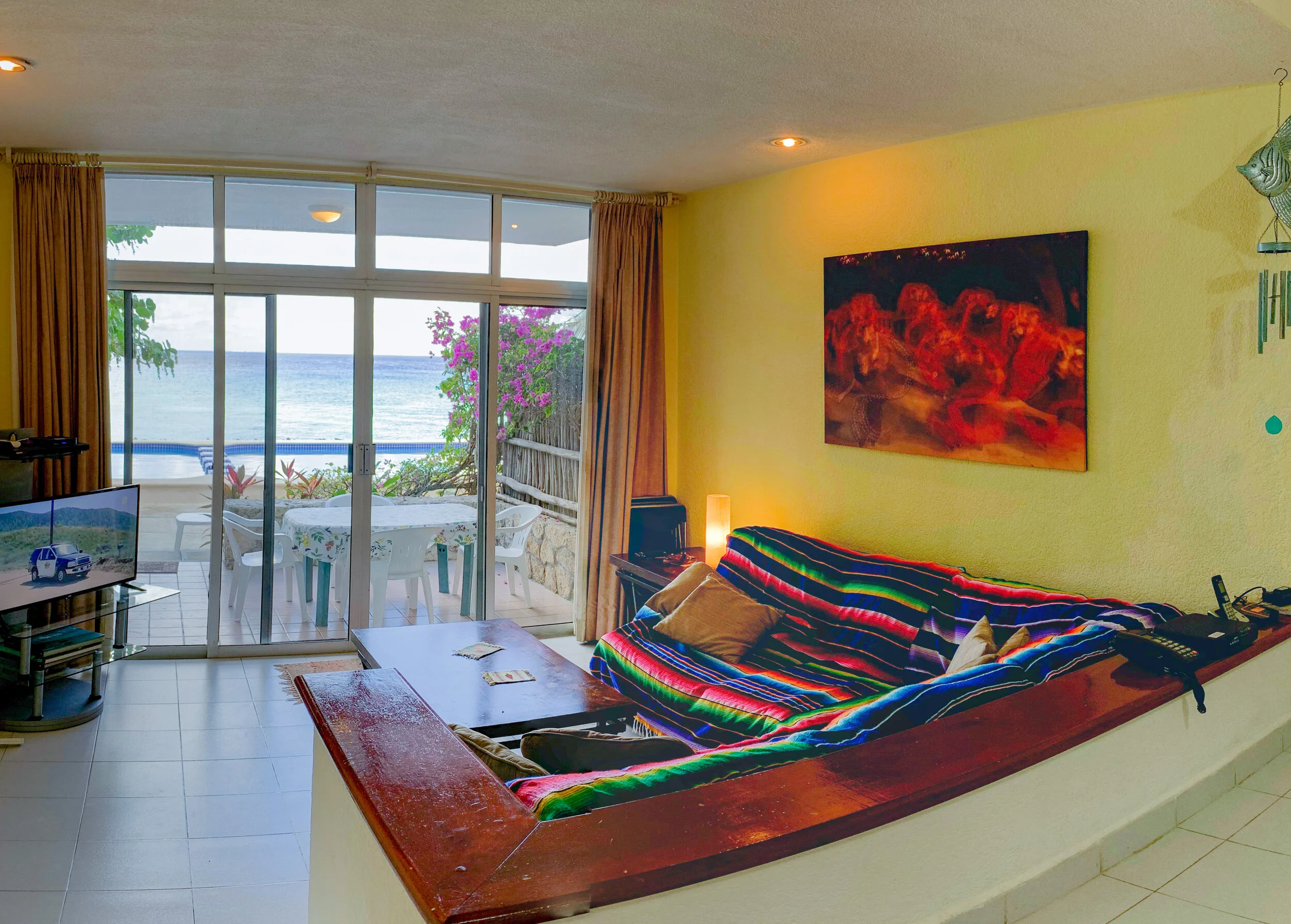 A ladder leads to the ocean where there is abundant sea life. Snorkelers enjoy eels, stingrays, trunkfish and a variety of other marine life. As the sun sets over the pool and the ocean it adds to the wonderful views that this condominium provides.