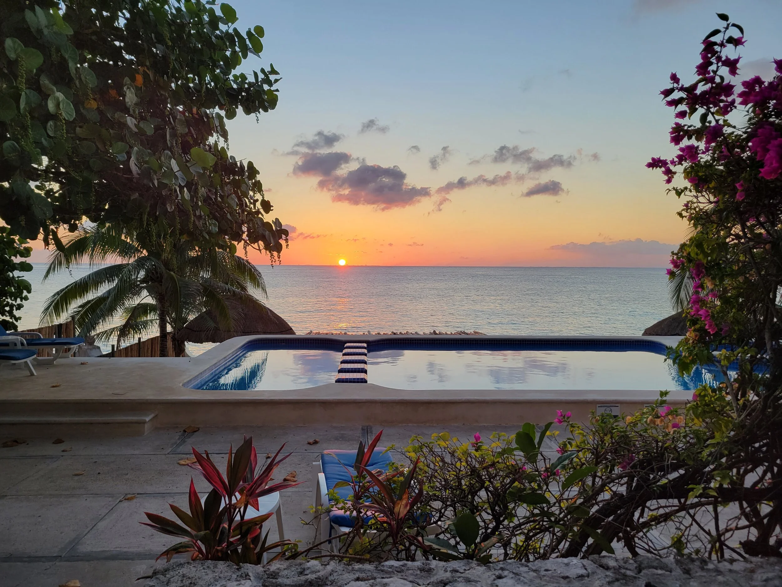 The patios are adjacent to the pool where there are comfortable lounge chairs available for the guests. A private secluded beach area is located on this property one flight of stairs below the pool. The sandy beach area has two palapas and a pergola for those people who want to look out over the ocean and also stay in the shade. There is plenty of room for sunning on this beach as well.